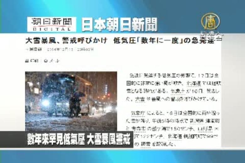 受到低氣壓影響,日本海沿岸降下大雪,尤其北海道最為嚴重。由於這個低氣壓的發達程度是過去少見,日本媒體紛紛用,炸彈型低氣壓,來形容。 //asset2.ntdtv.com.tw/public/uploads/video/2014/12/18/20141218-31537194.mp4 國際聚焦|日本|北海道|暴風雪|低氣壓|最新消息2014-12-17 23:50:22