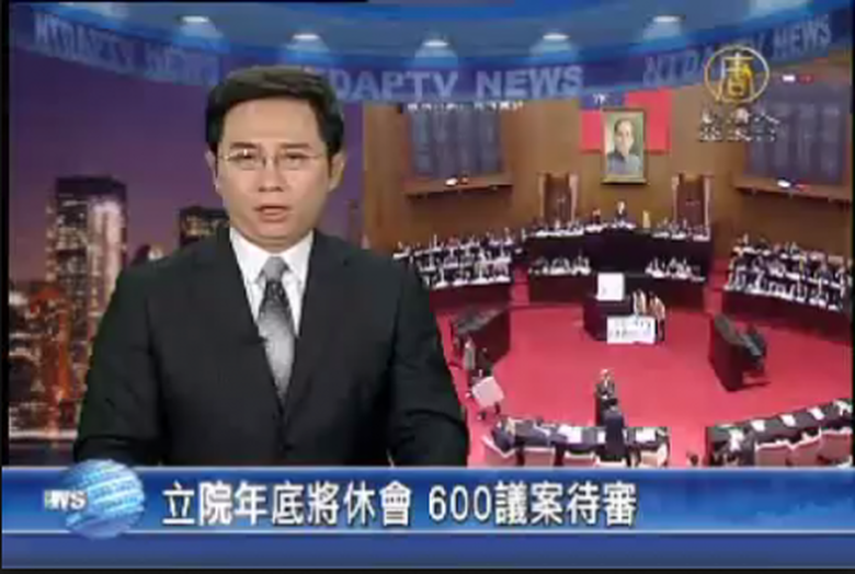 立法院這個會期即將結束,卻還有600議案還沒審,其中包括公務員懲戒法、集遊法修正草案,而國營事業預算案連今年的都還沒審完,公督盟執行長張宏林痛批立委效率不彰,台聯黨團總召賴振昌則批評,執政黨應該拿出誠意,與在野黨協商。 //asset1.ntdtv.com.tw/public/uploads/video/2014/12/22/20141222-31704403.mp4 台灣要聞|立法院|公督盟|丁守中|臨時會2014-12-21 20:54:00