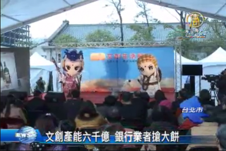 今年(2014年)國銀對創意產業放款餘額達2350億元,比去年(2013年)增加五百多億,加上台灣文創產業每年產能約有六千億,各銀行業者看準文創商機,積極訂立文創放款的計畫。 //asset1.ntdtv.com.tw/public/uploads/video/2014/12/22/20141222-31719907.mp4 最新消息|台灣要聞|文創|放款|銀行|劉燈城2014-12-22 13:24:02