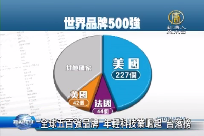 近年來,各種智慧型產品陸續成為科技界新寵兒。今年「世界品牌500強」當中的前十名,科技業就占了6個,另外,還有許多是不到10年的新興企業,不過,台灣這次並沒有上榜。 //asset2.ntdtv.com.tw/public/uploads/video/2014/12/28/20141228-31996757.mp4 財經縱橫|品牌管理|品牌價值|世界品牌500強|蘋果|Google|阿里巴巴|Facebook|最新消息2014-12-27 21:56:56
