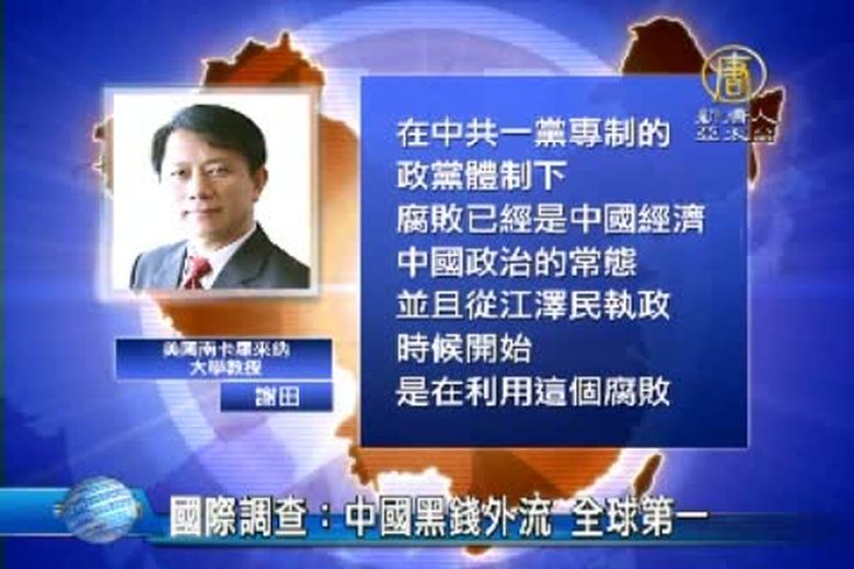 全球金融誠信機構的調查結果顯示,2012年,全球發展中國家的非法資金流動有將近1萬億美元之多,這些黑錢反映貪污、洗錢和偽造貿易日趨嚴重,其中中國名列非法資金流動國家的榜首,比第二名的俄羅斯多出將近一倍。 //asset1.ntdtv.com.tw/public/uploads/video/2014/12/29/20141229-32017279.mp4 真相中國|黑錢|貪官2014-12-28 21:21:22