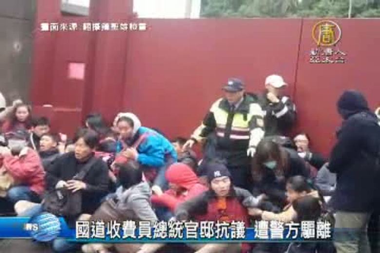 大約150名國道收費員自救會成員,今天(28日)下午到總統官邸前抗議,占據南昌路、愛國西路口的總統官邸後門,要求總統馬英九出來面對收費員,警方3度舉牌後驅離,隨後自救會成員陸續前往台北車站南二門集結,緊張情勢一度升高,台鐵與警方嚴陣以待。 //asset2.ntdtv.com.tw/public/uploads/video/2014/12/29/20141229-32017282.mp4 台灣要聞|國道收費員|自救會|總統官邸|抗議|驅離|台北車站2014-12-28 21:05:30