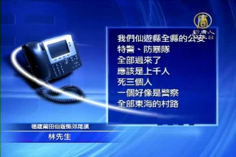 關心中國新聞真相報導,為了阻止大型化工廠興建,福建莆田市仙遊縣幾個鎮,大約3萬村民到相關部門維權,遭上千警察鎮壓。激烈衝突 導致多人受重傷,3人死亡,鎮政府大樓被砸毀。目前東海鎮仍被警察封鎖,禁止出入。 //asset3.ntdtv.com.tw/public/uploads/video/2015/01/01/20150101-32149833.mp4 真相中國|鎮壓|福建|莆田市|仙遊縣2014-12-31 21:29:42