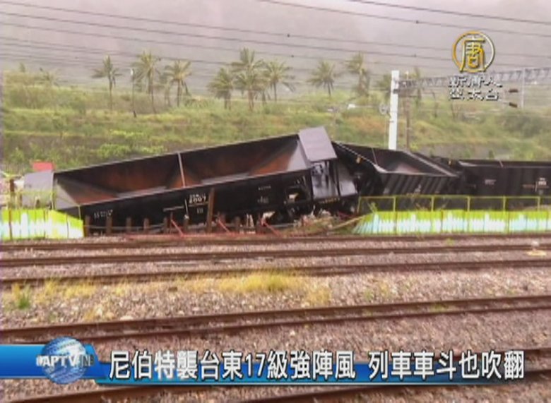 尼伯特襲台東17級強陣風 列車車斗也吹翻
