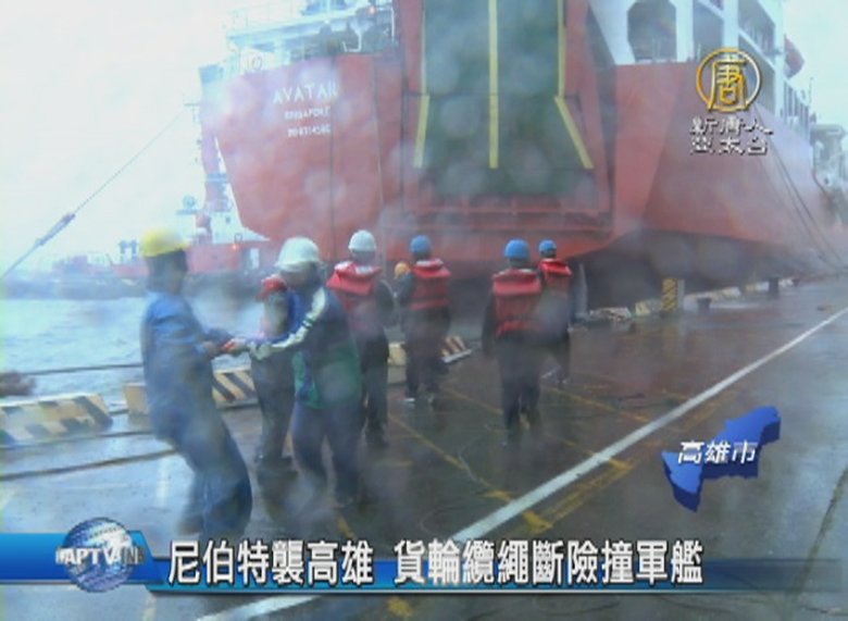 尼伯特襲高雄 貨輪纜繩斷險撞軍艦