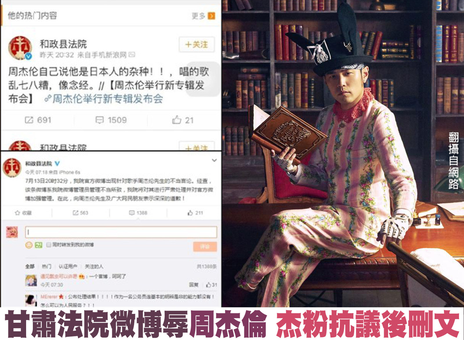 甘肅法院微博辱周杰倫 杰粉抗議後刪文|中國一分鐘