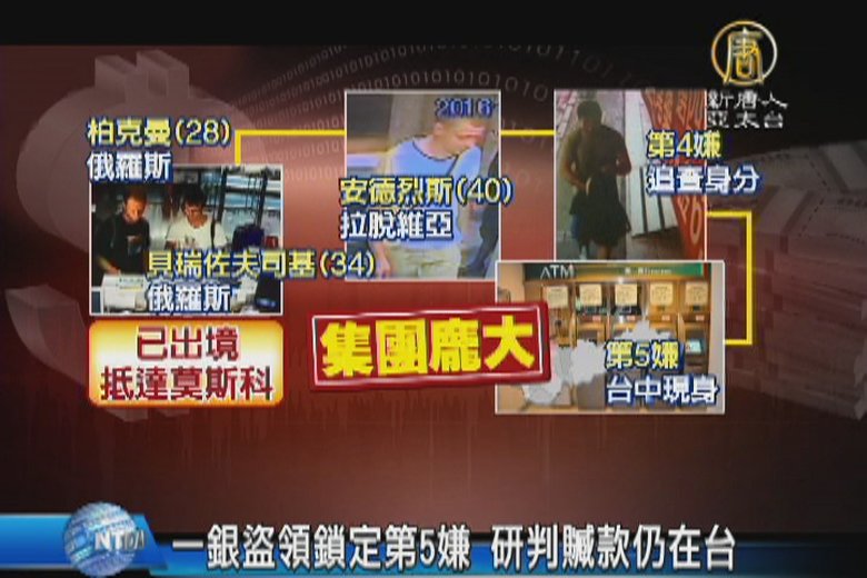 專案小組追查一銀盜領案,比對大量錄影監視畫面,目前已確切掌握至少有6名以上共犯,第三名嫌犯「安德烈」的正面清晰照也曝光。他是拉脫維亞籍,年約30歲。有周刊報導說他是師大語言中心的學生,警方還為此前往台師大調閱資料,不過校方今天下午表示,經過清查歷屆拉脫維亞籍的學生名單,並無此人,澄清「純屬誤傳」。 //asset3.ntdtv.com.tw/public/uploads/assets/2016/07/14/2016-07-14-5787826788b2d.mp4 一銀盜領|台師大|安卓斯|拉脫維亞2016-07-14 20:12:25