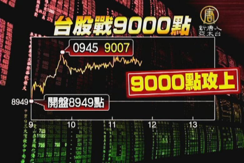 外資持續匯入,不僅讓台幣匯率升破32元關卡,今天(18日)台股開盤不到1小時就衝上9000點關卡,創下1年來高點。 //asset2.ntdtv.com.tw/public/uploads/assets/2016/07/18/2016-07-18-578cc93ecc442.mp4 台股|9000點|外資|蘋概股|大立光2016-07-18 20:13:46
