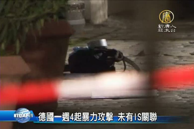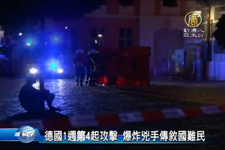 再來關心,德國一周之內發生第4宗襲擊案。德國南部巴伐利亞州安斯巴赫市一間酒吧,在昨天晚間,發生人肉炸彈襲擊,兇徒當場炸死,另有至少12人受傷,其中3人,情況嚴重。 //asset1.ntdtv.com.tw/public/uploads/assets/2016/07/25/2016-07-25-57960b3125a80.mp4 德國|自殺炸彈|敘利亞|難民|音樂節|酒吧|慕尼黑|槍擊|巴伐利亞|內政廳長|赫曼2016-07-25 20:47:44