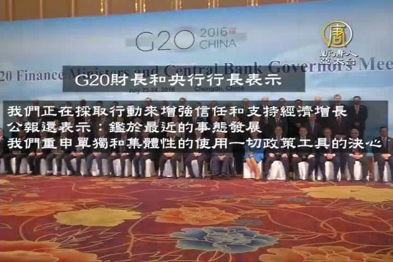 G20財長和央行行長2016年度第三次峰會星期天在中國成都落幕。在英國脫歐以及全球保護主義增長的背景下,全世界20個主要經濟體的財金領導人重申對支持全球經濟增長、採取更好協調行動的承諾。 //asset2.ntdtv.com.tw/public/uploads/assets/2016/07/25/2016-07-25-5796119eb38d2.mp4 G20|英國脫歐2016-07-25 21:15:48