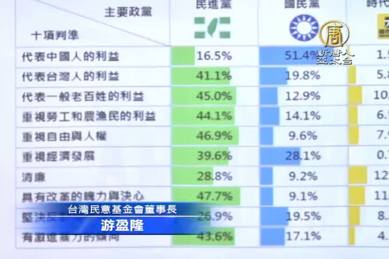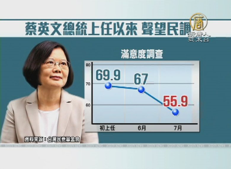 台灣民意基金會公布最新民調顯示,總統蔡英文聲望與520就職前相比,略為下滑了14%,仍有近6成的民眾對她的施政表示肯定,而三大政黨的形象比較,民眾對時代力量的喜好度追平國民黨,直逼國內第二大黨。 //asset1.ntdtv.com.tw/public/uploads/assets/2016/07/26/2016-07-26-5797543532900.mp4 蔡英文|民調|國民黨|黨產2016-07-26 20:13:23