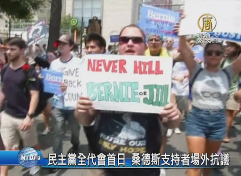 來關心美國總統大選,電郵門事件在民主黨內引起軒然大波。全代會第一天,大批支持桑德斯的民眾在會場外遊行,對希拉蕊表達不滿,並抗議民主黨初選不公。 //asset2.ntdtv.com.tw/public/uploads/assets/2016/07/26/2016-07-26-5797646bcb7db.mp4 民主黨|希拉蕊|桑德斯|華爾街|川普|民調|全代會|美國大選2016-07-26 21:24:02