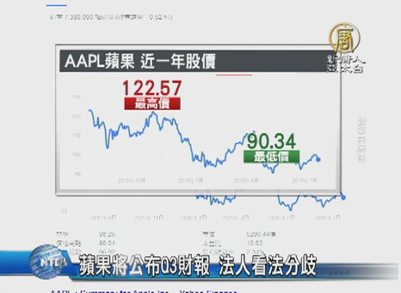 全球科技股重量級指標蘋果,周二美股盤後,也就是台北時間27號凌晨五點鐘,將揭曉業績,雖然蘋果股價最近可以說是一路下滑,但也有分析認為,配合蘋果自家的軟體和服務,也有機會上演反彈行情。 //asset1.ntdtv.com.tw/public/uploads/assets/2016/07/26/2016-07-26-57975afc05275.mp4 蘋果|AAPL|iPhone|庫克2016-07-26 20:42:36