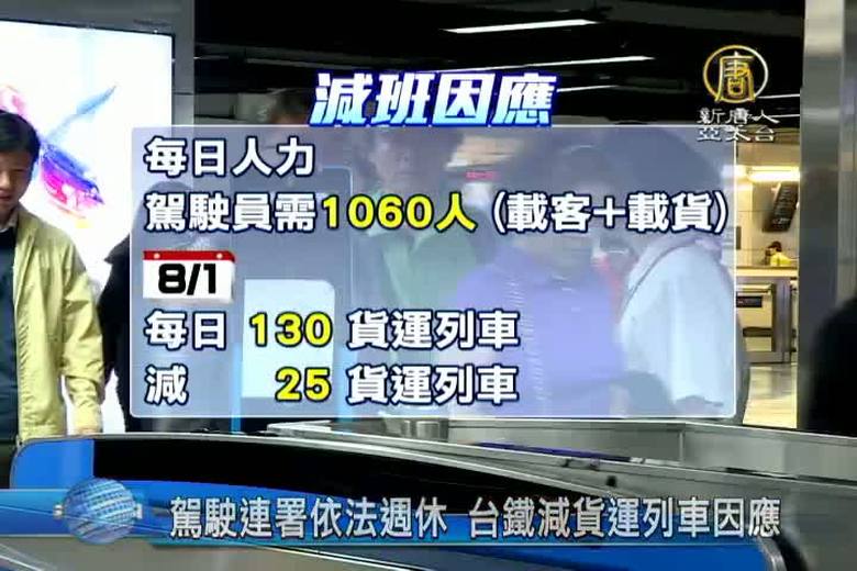 歡迎回來。中秋連假的疏運,恐怕不太妙,來看到,七休一新制延後2個月上路,引發台鐵工會抗議。不滿人力長期不足,說不排除要依法週休,今天,已經展開連署。 //asset3.ntdtv.com.tw/public/uploads/assets/2016/08/01/2016-08-01-579f405c24243.mp4 台鐵|駕駛|週休|貨運列車2016-08-01 20:26:57