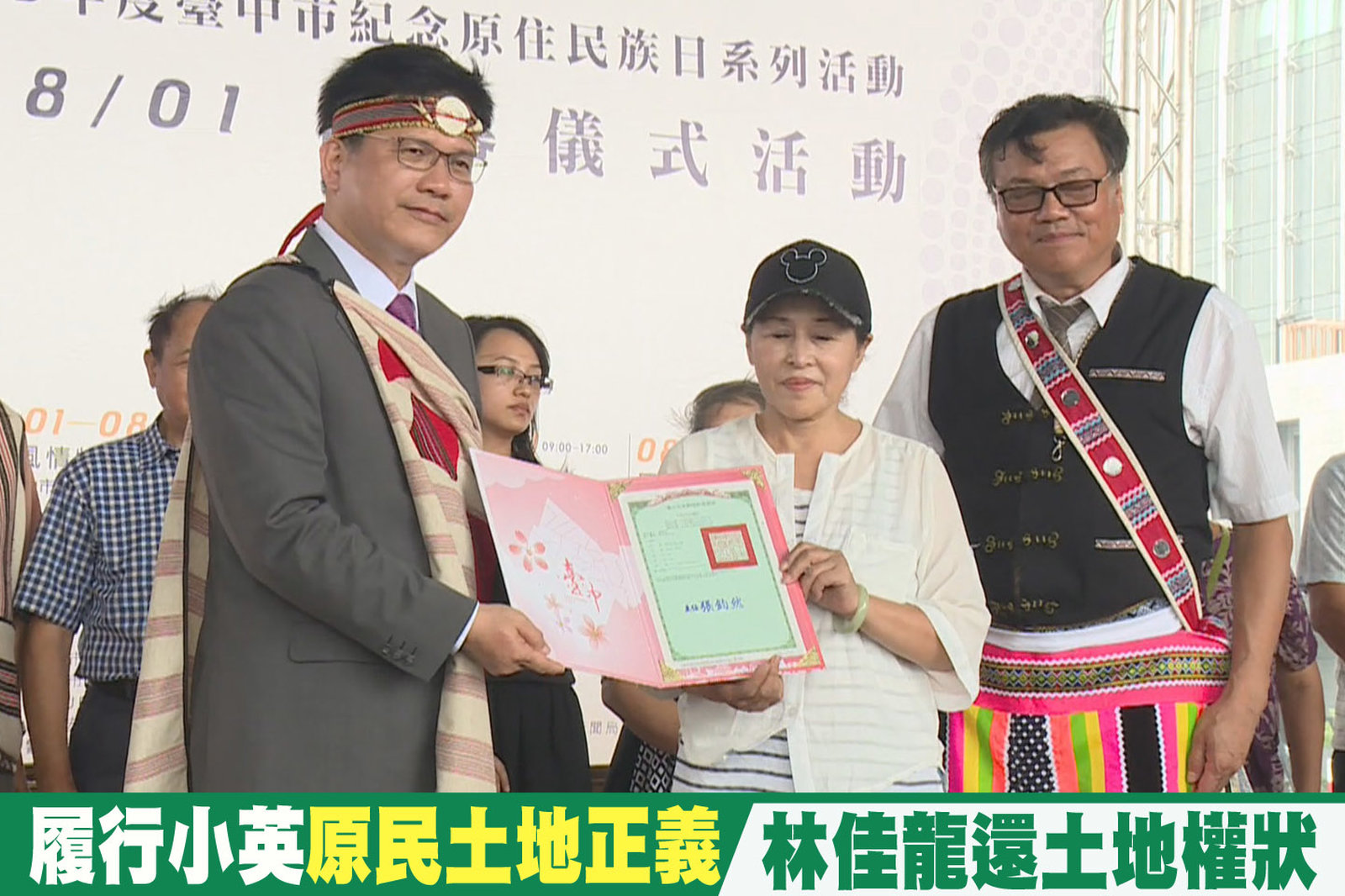 為了履行總統蔡英文對原住民土地正義的承諾,今天8月1日原住民日,台中市長林佳龍也代表市府回歸11筆原住民土地權狀,林佳龍表示,除了致歉,還要確立原住民的主體性,歸還土地的同時,確保語言跟文化受到保障。 //asset1.ntdtv.com.tw/public/uploads/assets/2016/08/01/2016-08-01-579f4adb0b0a9.mp4 原住民|原住民土地權狀|土地正義|蔡英文|林佳龍|台中2016-08-01 21:10:39