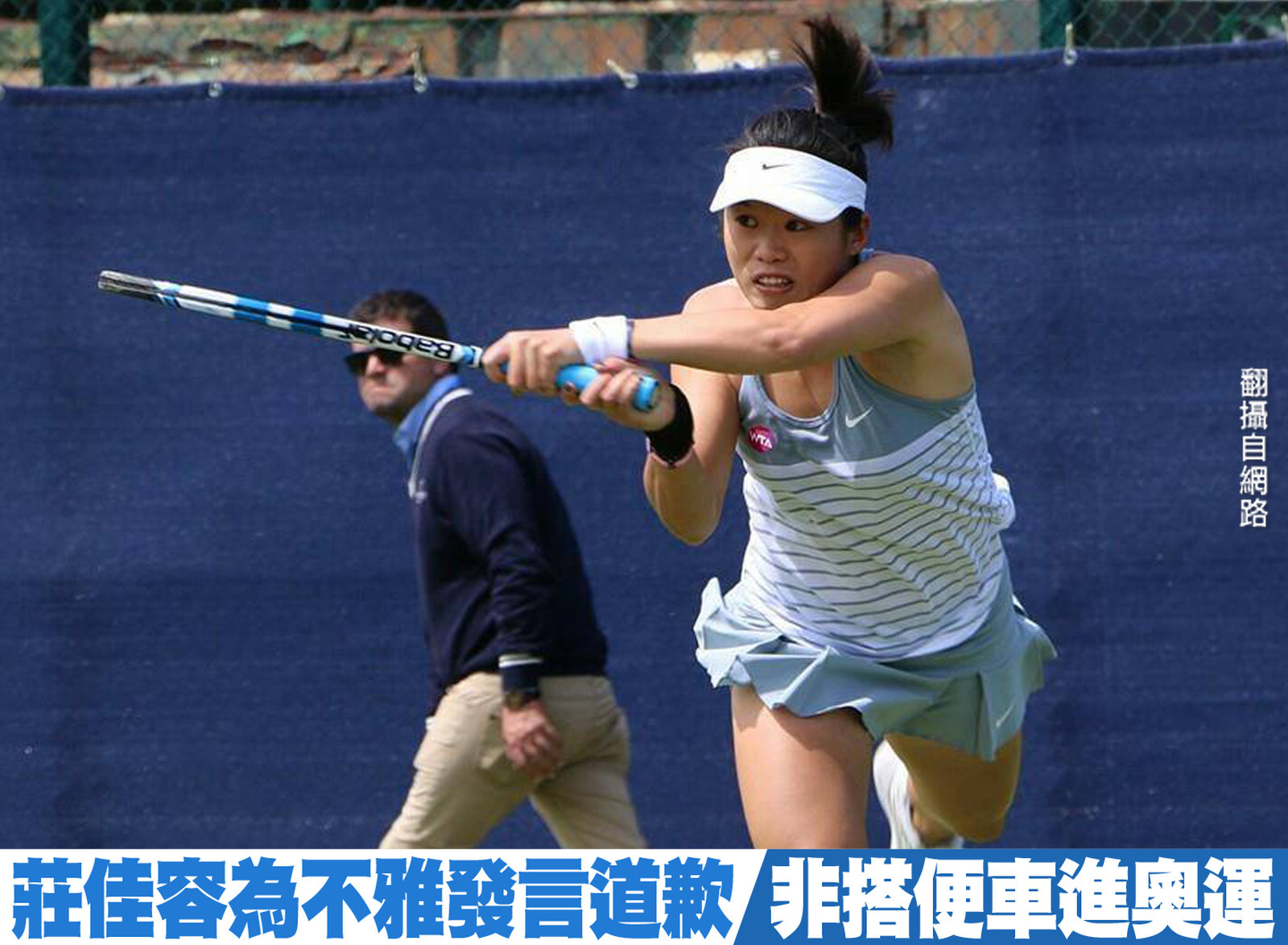 網球選手莊佳容今天表示,她為在公開社群網站上留下不雅字眼道歉,「對不起,因為一時情緒,做了錯誤示範,真的很抱歉」,但她也說,不是外傳靠「搭便車」才取得奧林匹克運動會資格。 //asset1.ntdtv.com.tw/public/uploads/assets/2016/08/06/2016-08-06-57a5e65e88b59.mp4 2016-08-07 21:18:26