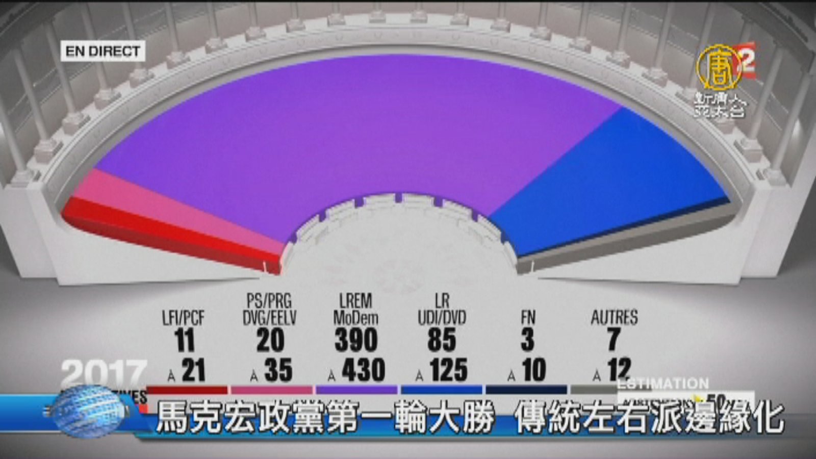 來看到國際重要訊息。先來關心,法國國會選舉,第一輪投票在昨天(11日)展開,總統馬克宏中間派政黨,和盟友,以32.32%的得票率,獲得國會席次絕對多數的勝利。 //asset3.ntdtv.com.tw/public/uploads/assets/2017/06/12/2017-06-12-593e8826146e2.mp4 法國國會大選|法國|馬克宏2017-06-12 20:24:02