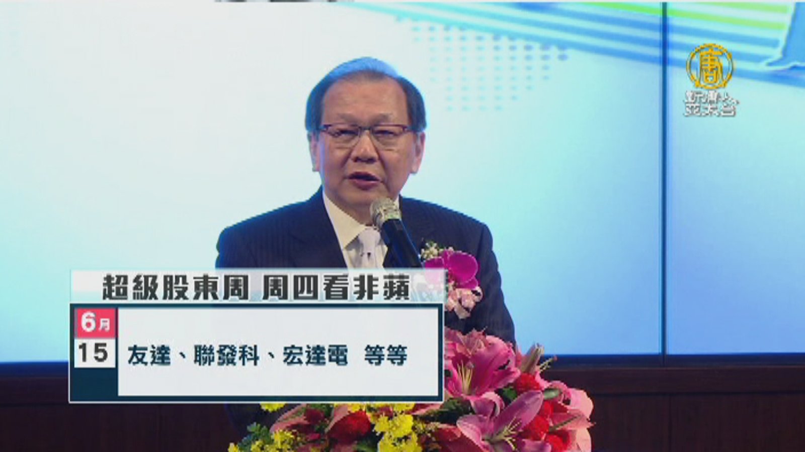 好,再來看到,延續上周台積電股東會,本周有多達600家上市櫃公司,也接連召開股東會,包括股王大立光、聯發科,是科技類股中,受到矚目的焦點,此外金控業者方面,國泰金、富邦金,也受到法人關注。 //asset3.ntdtv.com.tw/public/uploads/assets/2017/06/14/2017-06-14-593fcc30a8a18.mp4 股東會|大立光|聯發科|宏達電|富邦|台股|除息2017-06-12 20:17:24