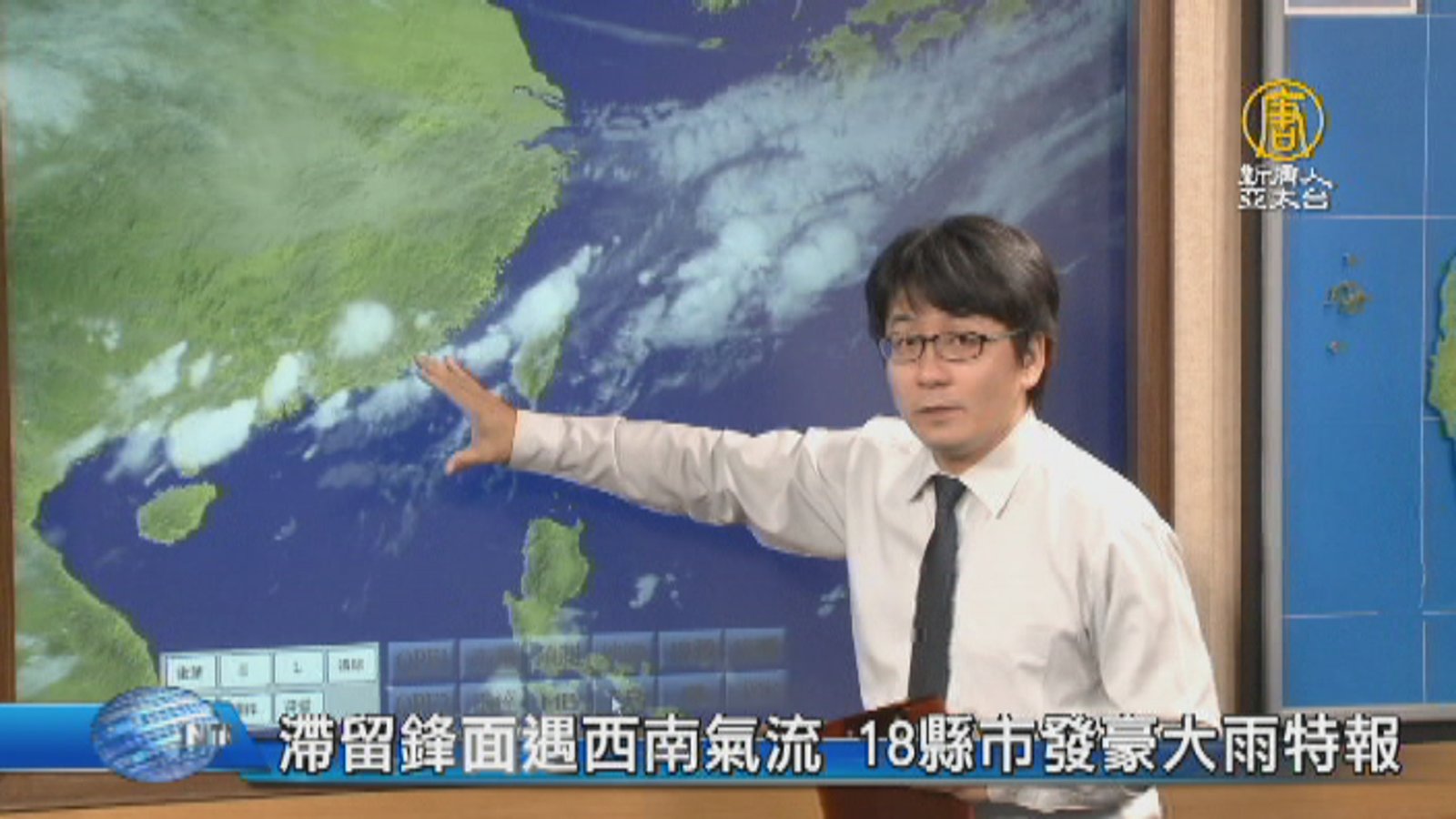 新聞頭條,先來關心,梅雨鋒面,今天再度來襲,強降雨灌全台,桃園苗栗台中南投,雨量超過200毫米,氣象局表示,在滯留鋒面及西南氣流雙重夾擊下,西半部將有豪雨或大豪雨等級以上降雨,而且提醒您,這波鋒面,滯留時間,有可能長達8到9天。 //asset1.ntdtv.com.tw/public/uploads/assets/2017/06/14/2017-06-14-594127051bc02.mp4 豪雨襲台|滯留鋒面|西南氣流|致災梅雨鋒面|梅雨|氣象2017-06-14 20:03:38
