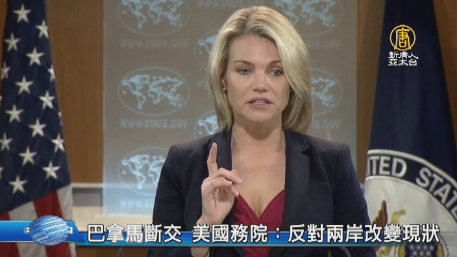 好,巴拿馬昨天無預警斷交,引發兩岸政治風波。對此,美國國務院強調,美國政府反對兩岸任何一方改變現狀。接下來巴拿馬總統瓦雷拉,將訪問華府,美方的反應,值得關注。 //asset2.ntdtv.com.tw/public/uploads/assets/2017/06/14/2017-06-14-594128271109c.mp4 巴拿馬斷交|美國|國務院|台灣2017-06-14 20:08:53
