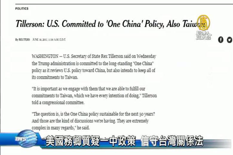 台巴斷交後,美國國務卿提勒森,14日出席參院外交關係委員會作證時,也被同黨籍眾議員夏波問到一中政策立場,提勒森表示,川普政府忠於長期以來維持的一中政策,儘管美、中對「一中政策」有不同解釋,但重要的是,美中交往時,美方完全信守「台灣關係法」,並依照台灣關係法履行所有對台承諾。但他也補上一個疑問,他說「問題是,一中政策在未來50年是否還能持續?目前正在討論中,就許多層面來看都極為複雜。」 //asset3.ntdtv.com.tw/public/uploads/assets/2017/06/15/2017-06-15-59427d9aa7dd7.mp4 美國|提勒森|一中政策|台灣關係法2017-06-15 20:27:17
