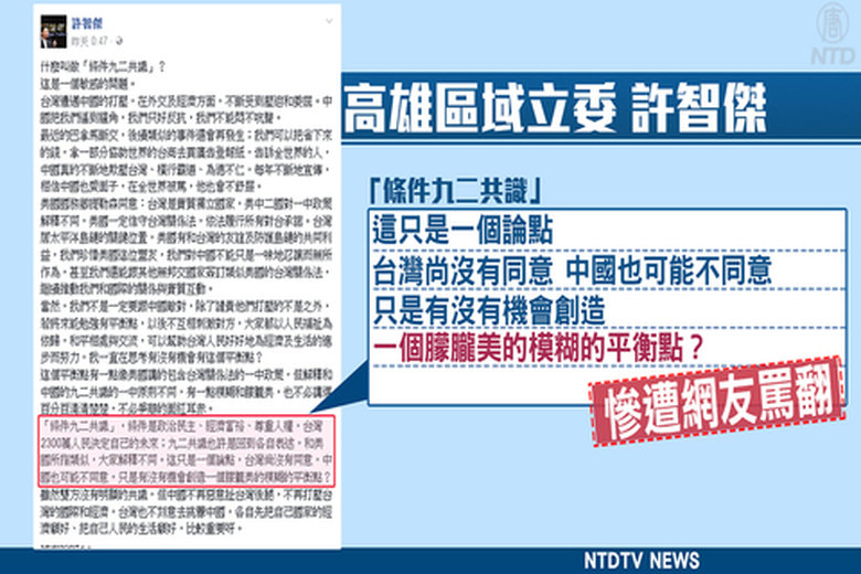綠營兩岸風向亂 提九二共識條件網友罵翻