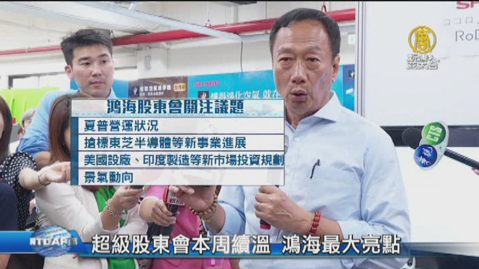 另外財經焦點來看到,本週有二件大事,一是MSCI公司將於 6 月21日宣布是否將 A 股納入基準指數;另一件大事,則是鴻海為首的電子與傳產重量級股東會,第二波高峰登場,董事長郭台銘如何看集團發展、景氣動向、甚至對政府建言,都是市場關注的焦點。 //asset2.ntdtv.com.tw/public/uploads/assets/2017/06/19/2017-06-19-5947be7ccb6a7.mp4 鴻海|夏普|郭台銘|和碩|超級股東會周2017-06-19 20:54:39