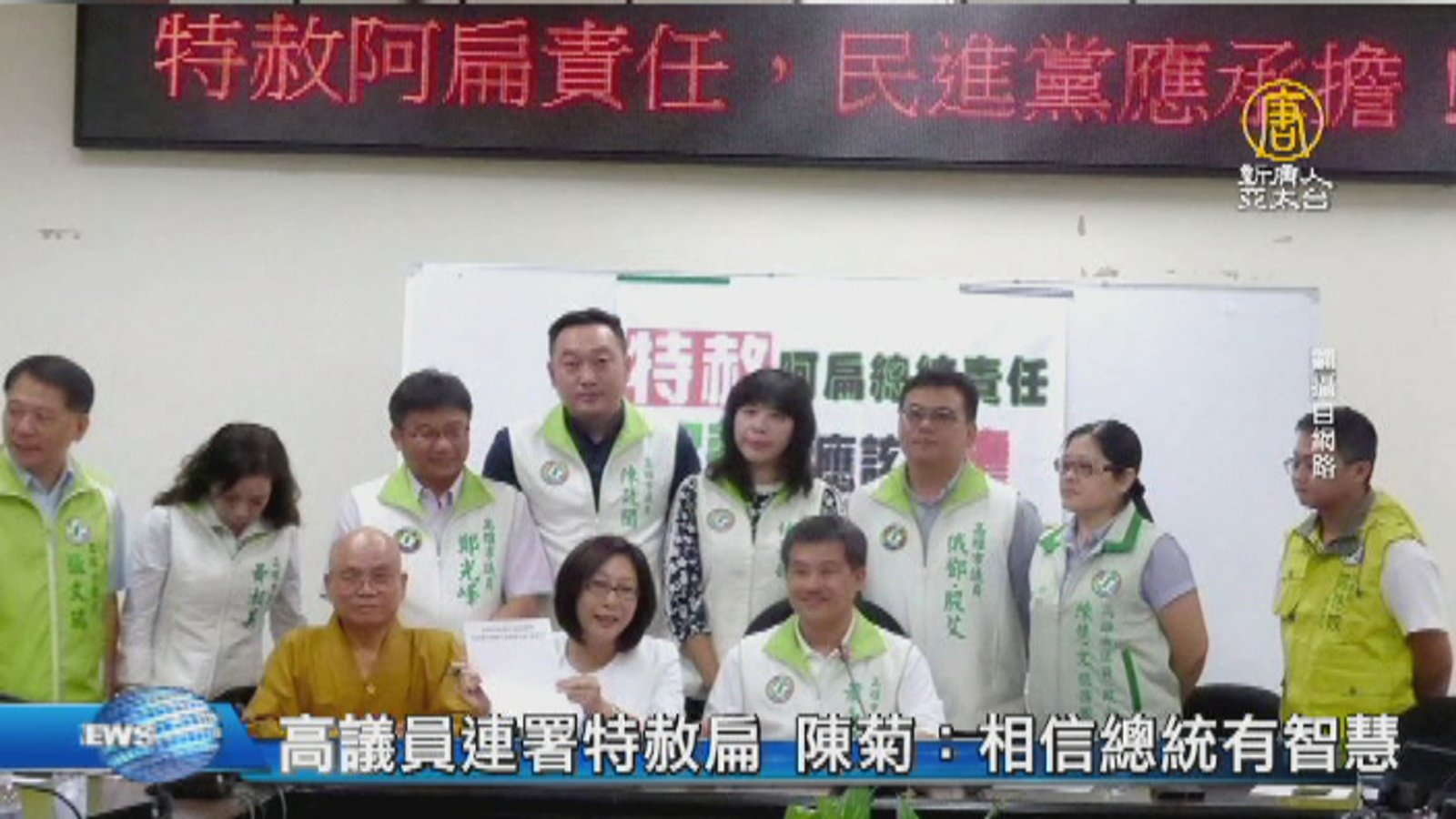 好,除了外交,總統蔡英文還得面對,部分台派人士,要特赦前總統陳水扁,民進黨地方議員甚至籌組聯盟,發起連署,將在今年民進黨全代會上,提案特赦陳水扁。 //asset1.ntdtv.com.tw/public/uploads/assets/2017/06/20/2017-06-20-5949105fc67b6.mp4 特赦陳水扁|陳水扁|陳致中|陳菊2017-06-20 20:07:32