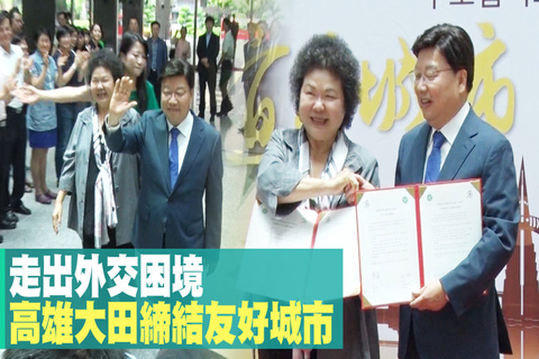 再來看到,儘管台灣面臨外交困境,各地首長仍利用城市外交與世界接軌,今天(20日)高雄市長陳菊,與來訪的韓國大田廣域市市長,共同簽署友好城市合作協議,希望未來在產、學方面有更多的交流與接觸。 //asset2.ntdtv.com.tw/public/uploads/assets/2017/06/21/2017-06-21-594938e329931.mp4 韓國大田廣域市|權善宅|陳菊|城市外交|友好城市|高雄2017-06-20 21:21:19
