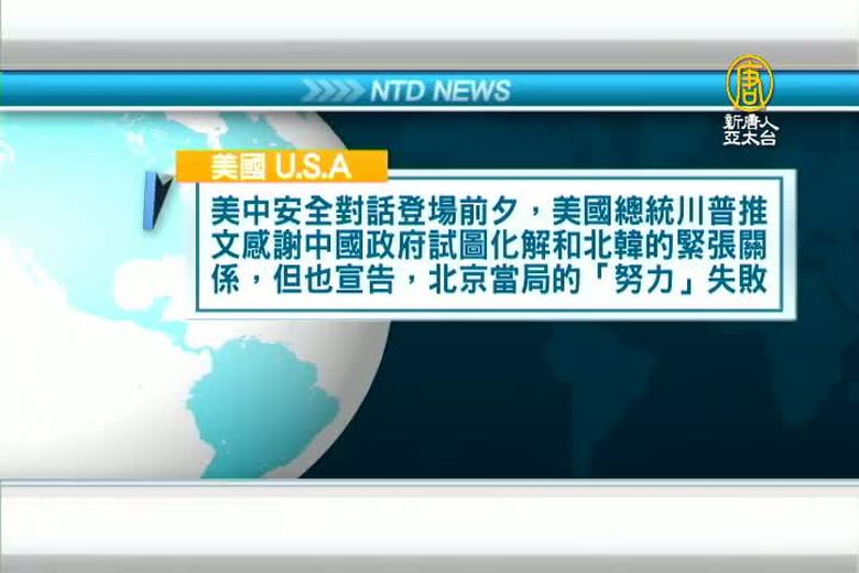 再來看到,美國總統川普上任以來,美中雙方首度在華府舉行外交與安全對話,媒體關切,在巴拿馬與台灣斷交,轉而與中國建交後,美方是否會擔心兩岸緊張升溫?進而將台灣納入這次對話的主題之一。美國國務院官員表示,美方不願見到兩岸有任何一方破壞穩定,也反對任何一方,改變現狀。 //asset3.ntdtv.com.tw/public/uploads/assets/2017/06/21/2017-06-21-594a641d54c01.mp4 美中外交與安全對話|董雲裳|提勒森2017-06-21 20:18:43