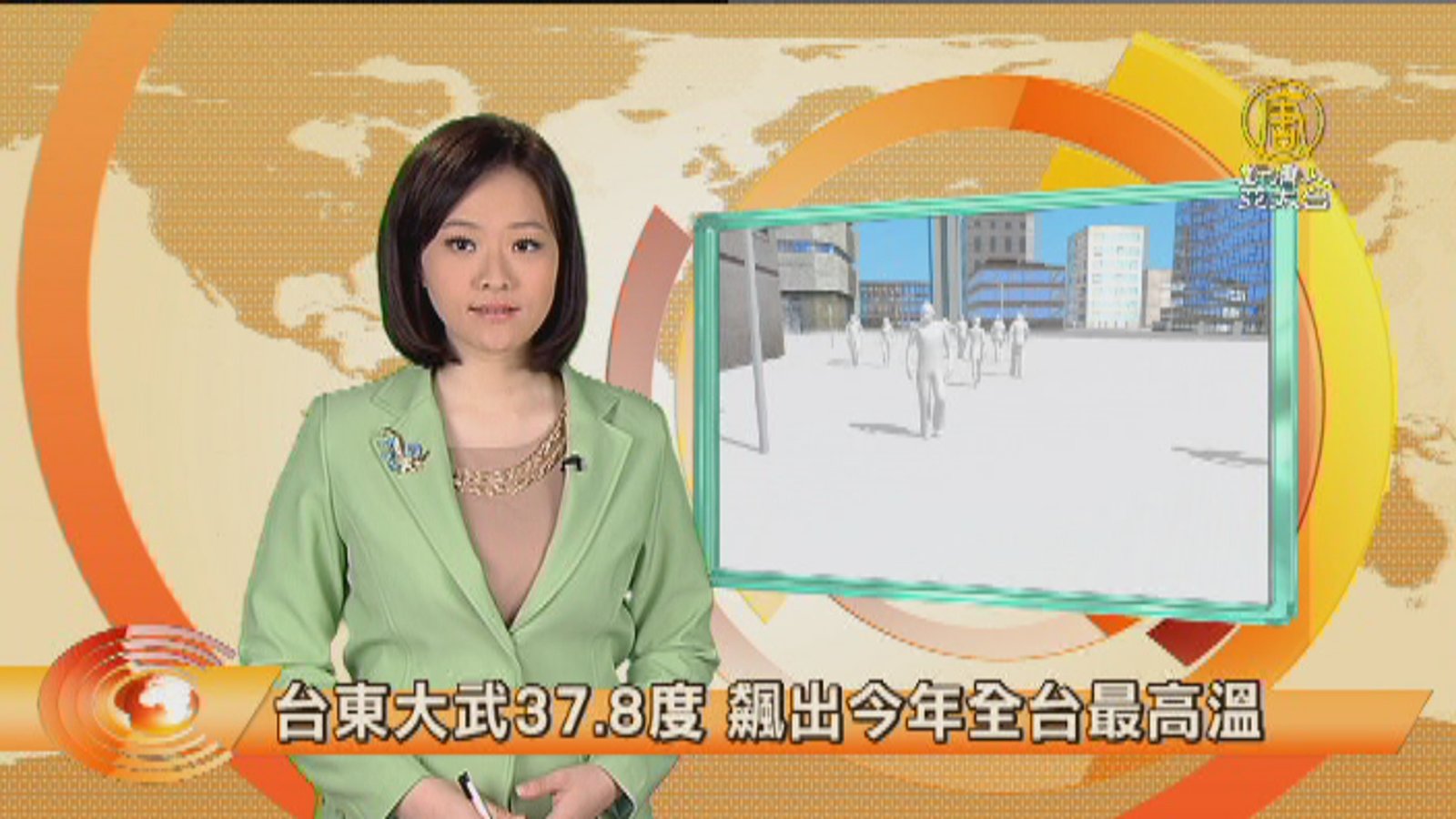 歡迎回來,來關心天氣。今天真的好熱,太平洋高壓持續增強,加上西南風加持,今天中午12點11分,台東大武高溫飆到37.8度,刷新今年全台最高溫紀錄,台北與嘉義高溫也熱破35度。台電表示,今天最高用電量在下午1點48分達到3451.5萬瓩,創今年用電次高紀錄,供電呈現吃緊的黃燈,核三廠1號機更一度出狀況,降載到功率35%,所幸檢修後已經恢復正常。氣象局表示,未來一週全台都是高溫炎熱的天氣,提醒民眾要適時補充水分,預防中暑。 //asset2.ntdtv.com.tw/public/uploads/assets/2017/06/22/2017-06-22-594bc3e83fd79.mp4 台東大武|高溫|最高溫紀錄|用電量|供電2017-06-22 21:19:42