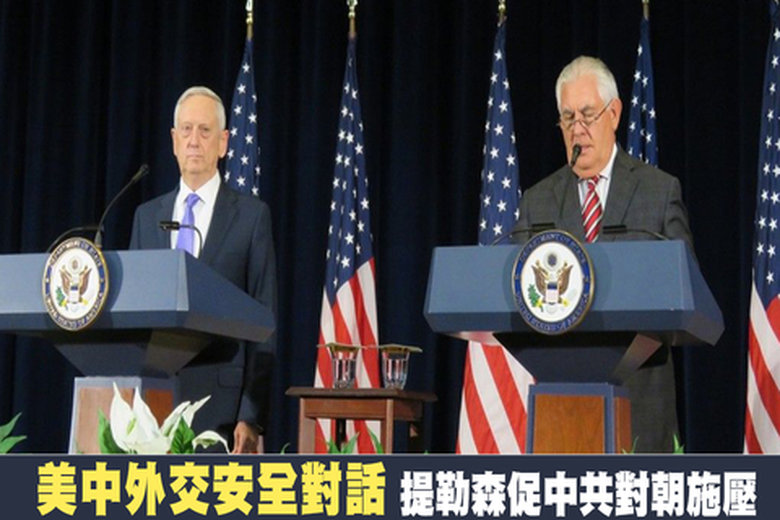 歡迎回來。美中首輪外交與安全對話,21日在美國華府舉行,美國國務卿提勒森在會後的聯合記者會上,敦促中共加強對北韓施壓,包括截斷北韓核子項目的資金來源。 //asset1.ntdtv.com.tw/public/uploads/assets/2017/06/22/2017-06-22-594bba5d5a5a4.mp4 美中外交與安全對話|北韓|核試驗|朝鮮緊張局勢2017-06-22 20:37:28