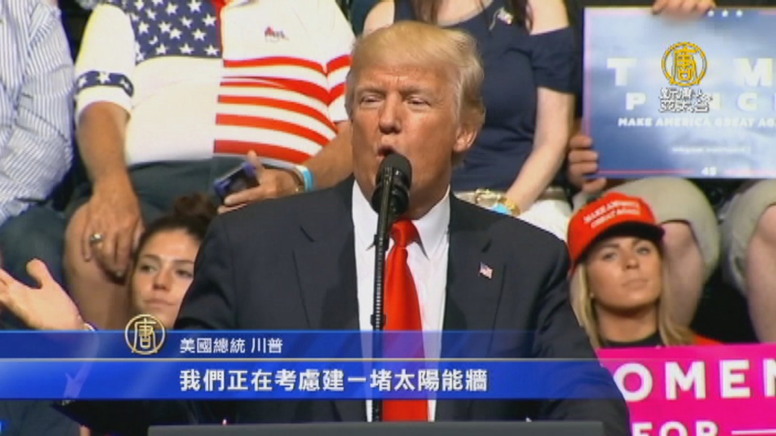 再來看到,美國總統川普,在愛荷華州的一場集會首度建議,要在美國與墨西哥邊境蓋「太陽能牆」,在圍牆上安裝太陽能板,這樣就不僅能創造能源,也可支應築牆的相關費用,一舉數得。 而光靠川普昨天這一席話,就讓美國太陽能類股應聲大漲。 //asset3.ntdtv.com.tw/public/uploads/assets/2017/06/23/2017-06-23-594d0ba1ab9f1.mp4 川普|選舉承諾|美墨邊境築牆|太陽能牆|假新聞2017-06-23 20:33:20