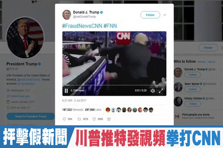 抨擊假新聞 川普推特發視頻 拳打CNN