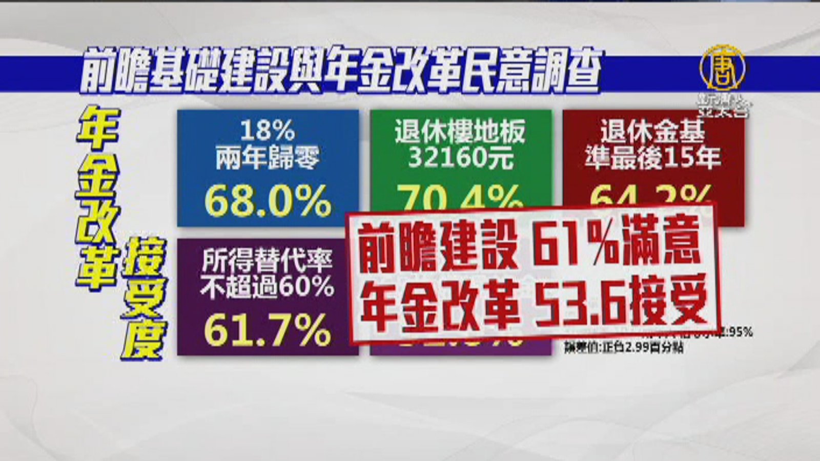 來看一份最新民調,民眾對前瞻計畫的支持度,高達60%以上。立委解讀,之前大家不接受,是因為不了解前瞻建設的內容,所以才會反對。強調行政團隊應該要多加和民眾溝通,才能獲取社會的支持。 //asset1.ntdtv.com.tw/public/uploads/assets/2017/07/03/2017-07-03-595a343244685.mp4 台灣智庫民調|前瞻計畫|年金改革|羅致政|王定宇|莊瑞雄|張勝雄2017-07-03 20:08:10