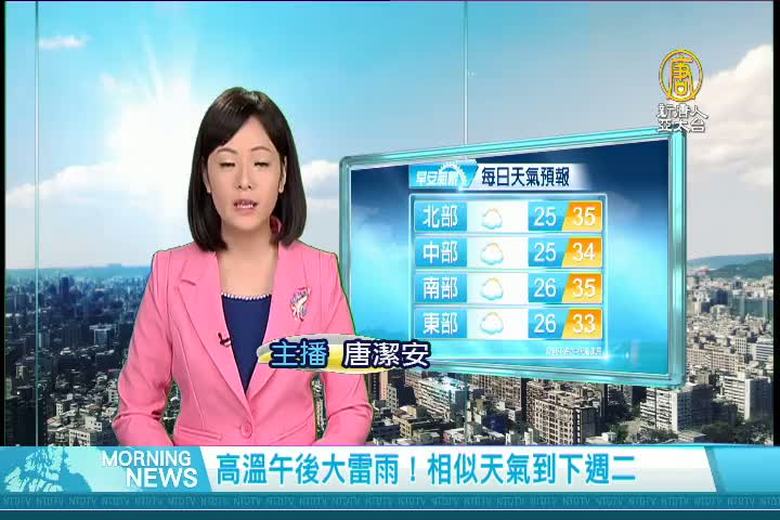 今天天氣還是很熱,白天各地高溫可以來到33到35度,中午過後,很有可能出現大雷雨提醒觀眾朋友,下午出門還是要記得帶傘。 //asset3.ntdtv.com.tw/public/uploads/assets/2017/07/05/2017-07-05-595ce1ca4e0c4.mp4 高溫|午後雷陣雨|熱帶性低氣壓|颱風2017-07-05 20:52:44