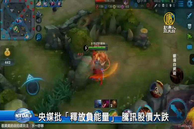 中國網路公司騰訊,旗下的熱門電玩「王者榮耀」,週一遭中共官媒點名批評。隔天,騰訊市值在一天之內,蒸發了151億美元。有時事評論員認為,事件不尋常,可能涉及中南海權力鬥爭。 //asset3.ntdtv.com.tw/public/uploads/assets/2017/07/06/2017-07-06-595cf2c1891e1.mp4 王者榮耀|騰訊2017-07-05 21:19:42