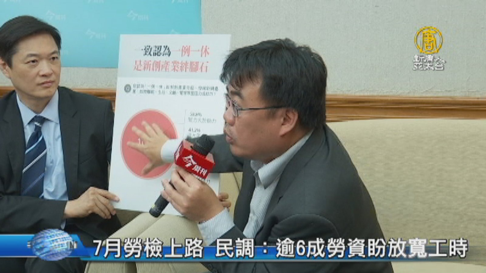 繼續關心,一例一休上路滿半年,七月正式進入勞檢期,不過到現在,爭議卻沒停過,雜誌社與人力銀行最新調查指出,超過六成的上班族認為,加班時數上限,非改不可。 //asset1.ntdtv.com.tw/public/uploads/assets/2017/07/05/2017-07-05-595cd74ae7841.mp4 勞資法|一例一休|政府|勞檢2017-07-05 20:06:27