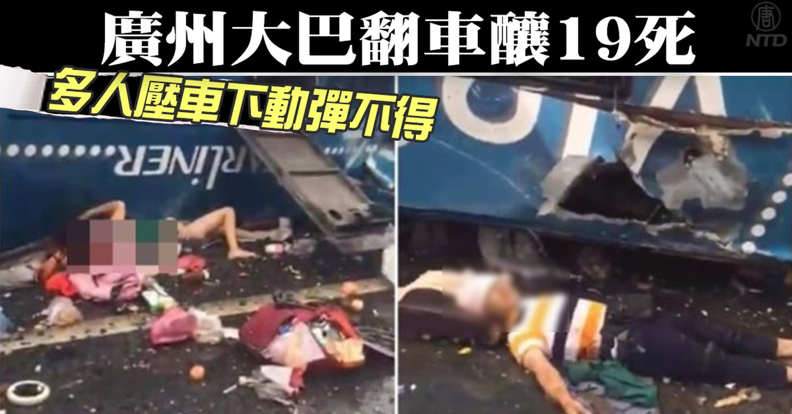 廣州大巴翻車釀19死 多人壓車下動彈不得