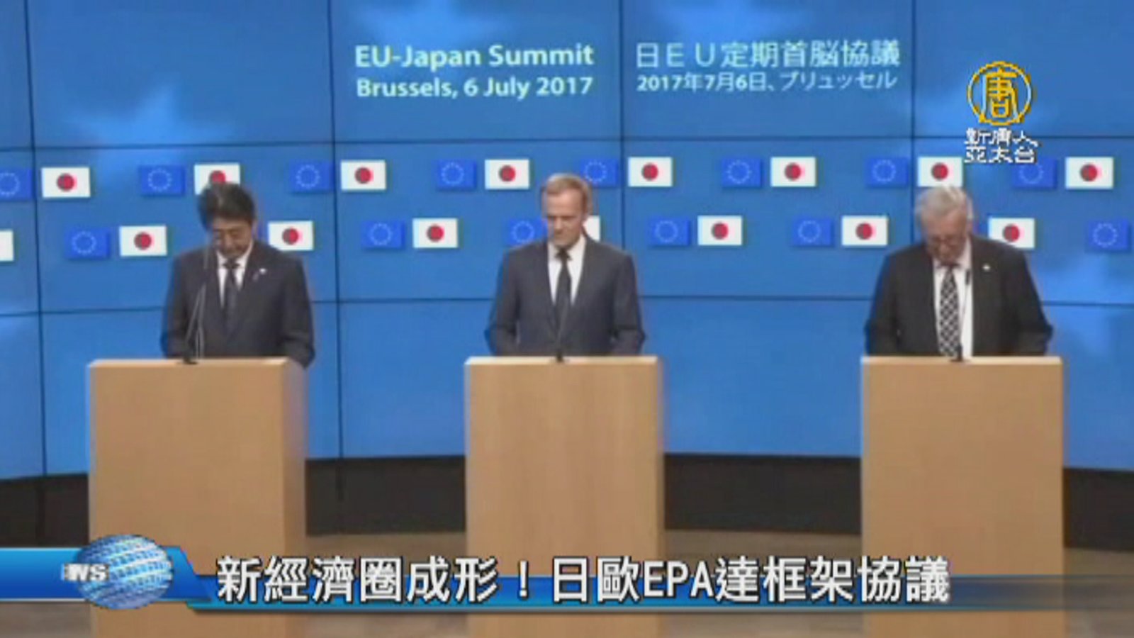 趕在G20前夕,占全球貿易總額近三成的新經濟圈,有望成形!歐洲理事會主席圖斯克 ,與日本首相安倍晉三今天(6日)會面後,確定達成日歐經濟夥伴協定 架構協議。 //asset3.ntdtv.com.tw/public/uploads/assets/2017/07/06/2017-07-06-595e39245e4f9.mp4 歐洲|日本|日歐經濟夥伴協定架構協議|EPA2017-07-06 21:19:28
