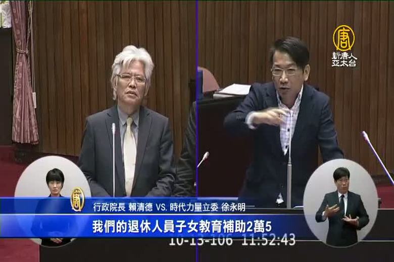 行政院長賴清德,今天到立院報告107年度總預算案,被時代力量立委徐永明問到,每年花20多億,又沒有法源依據的年終慰問金,究竟要不要砍,賴清德說明天可以檢討,另外在質詢下,賴清德也責成教育部,成立委員會,研議英文列為第二語言的政策。 //asset1.ntdtv.com.tw/public/uploads/assets/2017/10/13/2017-10-13-59e0be03a3377.mp4 賴清德|立法院|107年度總預算|立委徐永明|預算案2017-10-14 18:47:09
