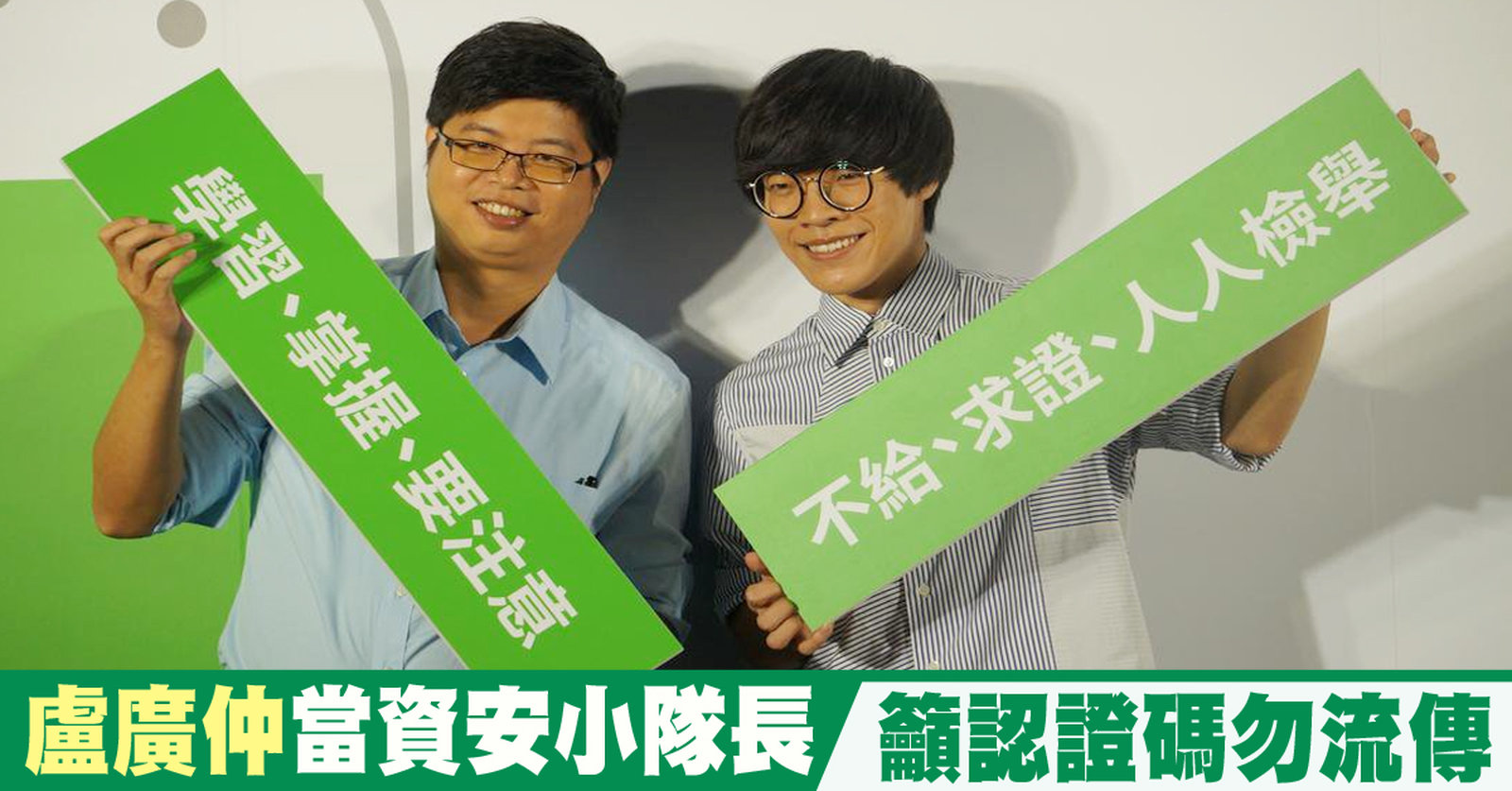 盧廣仲當資安小隊長 籲認證碼勿流傳
