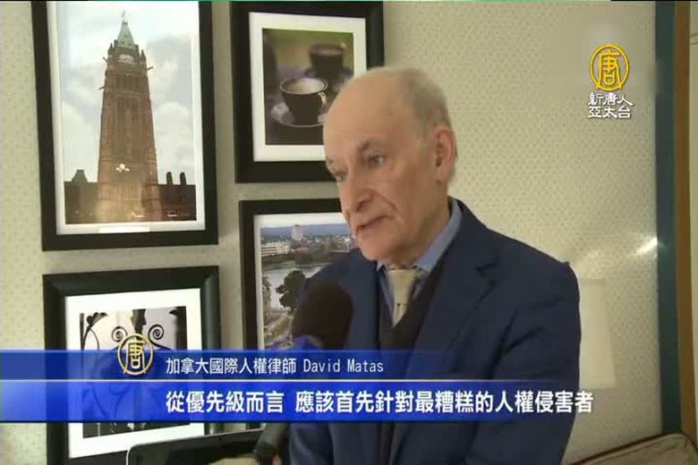 加拿大國會日前通過了《制裁海外人權侵害者法案》,並於本週三正式成為法律。國際人權律師大衛.麥塔斯指出,加拿大應該要首先將這項法律,用來制裁江澤民等迫害法輪功的人權惡棍。 //asset1.ntdtv.com.tw/public/uploads/assets/2017/10/20/2017-10-20-59e9ecfc5631f.mp4 加拿大|國會|制裁海外人權侵害者法案|大衛.麥塔斯|江澤民|迫害法輪功2017-10-20 20:48:41
