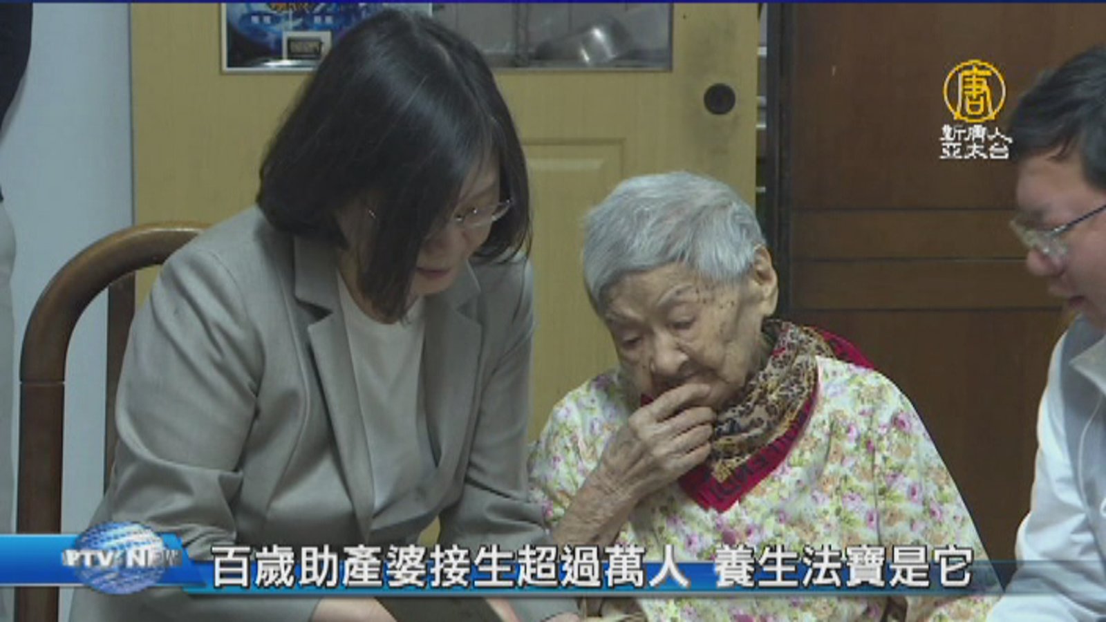 歡迎回來。重陽節前夕,蔡英文總統今天前往桃園市平鎮區,拜訪101歲人瑞 謝林霞妹,特別的是,這位人瑞老太太,從16歲起就擔任助產士工作,接生過的人,超過上萬人,老太太身體硬朗,還能自己到附近散步,她透露養生秘訣就是,每天早上,一杯咖啡。 //asset3.ntdtv.com.tw/public/uploads/assets/2017/10/20/2017-10-20-59e9f2dc3310b.mp4 人瑞|重陽節|高齡|助產士|蔡英文|紀錄片2017-10-20 20:55:06