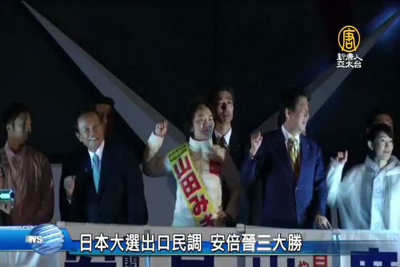 新聞頭條,帶您關心,日本眾議院大選今天舉行,在稍早台灣時間7點結束投票。受到颱風蘭恩侵襲,日本空中交通大亂,今天投票率為 29.99%,比去年低4.99個百分點,根據最新出爐的出口民調顯示,日本首相安倍晉三領導的執政聯盟大勝,自民黨和公民黨席次過半數,達到了177席。 //asset3.ntdtv.com.tw/public/uploads/assets/2017/10/22/2017-10-22-59ec895ace305.mp4 日本大選|安倍|安倍晉三|小池百合子2017-10-23 16:21:55