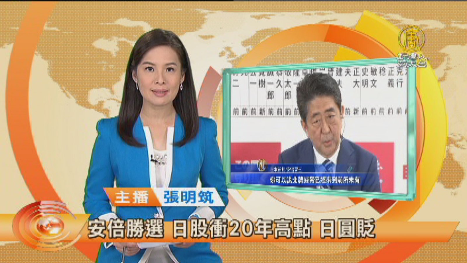 再來帶您關心,日本國會眾議院選舉在超強颱風,蘭恩,的威脅下,仍舊開出大多數選票,首相安倍晉三領導的自由民主黨執政聯盟,成功保住三分之二多數,篤定繼續執政。而對手,希望之黨黨主席小池百合子,坦承挫敗。由於安倍晉三執政聯盟大勝,帶動日本股市走高,日圓現金匯價,也跌破0.27大關,創下5個月以來的新低。 //asset1.ntdtv.com.tw/public/uploads/assets/2017/10/23/2017-10-23-59eddc73041c7.mp4 日本大選|安倍|自民黨|日圓大漲2017-10-24 23:19:58