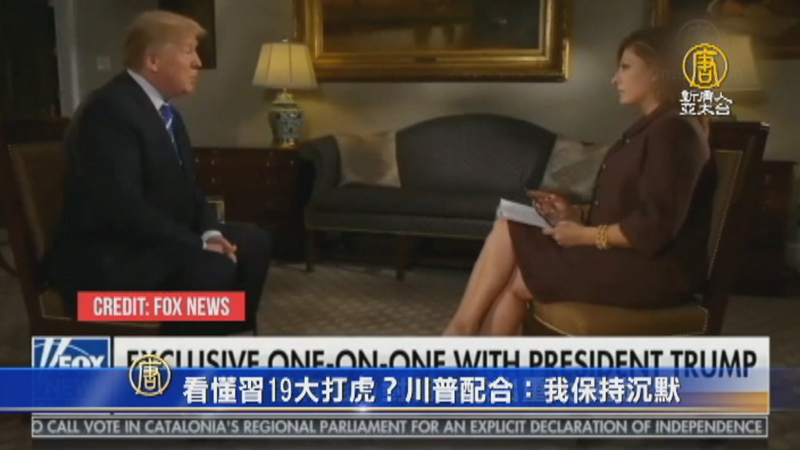 美國總統川普,肯定,並且瞭解習近平在中國十九大的打虎打貪嗎?帶您看到,在 最新的電視台專訪中,川普除了肯定習近平對北韓的箝制,還說,面對中共19大政治清剿上升,他會,保持低調,直到習近平得到他要的。 //asset1.ntdtv.com.tw/public/uploads/assets/2017/10/23/2017-10-23-59ede346611a6.mp4 川普訪中|習近平打虎|北韓|稅改紀念日|健保|習近平|打虎2017-10-24 00:22:39
