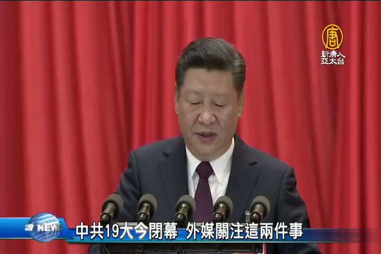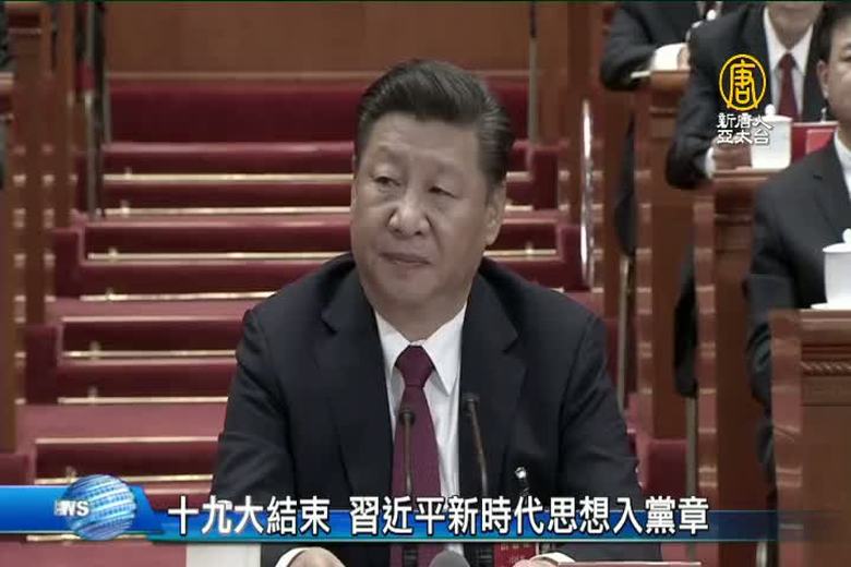 中共十九大今天閉幕,在十九大的最後一天,確認將 「習近平新時代中國特色社會主義思想」寫入黨章,至於外傳將總書記制改為黨主席制,則隻字未提。中共自1921年成立以來,只有毛澤東一個人在活著的時候,他的「思想」被寫進黨章,分析認為,這證實習近平現在享有罕見的權力和聲望。習近平今天在簡短講話中提到,承諾把中國帶入具有國際權利和影響力的「新紀元」,另外,中紀委書記王岐山確定不在中紀委委員新名單內,也沒有被選為新一屆中央委員,確定將卸任政治局常委。現在外界關注,明天舉行十九屆一中全會,將揭曉新一屆常委及排序。 //asset2.ntdtv.com.tw/public/uploads/assets/2017/10/24/2017-10-24-59ef3f9e7dd73.mp4 十九大|習近平|習思想2017-10-24 21:27:00