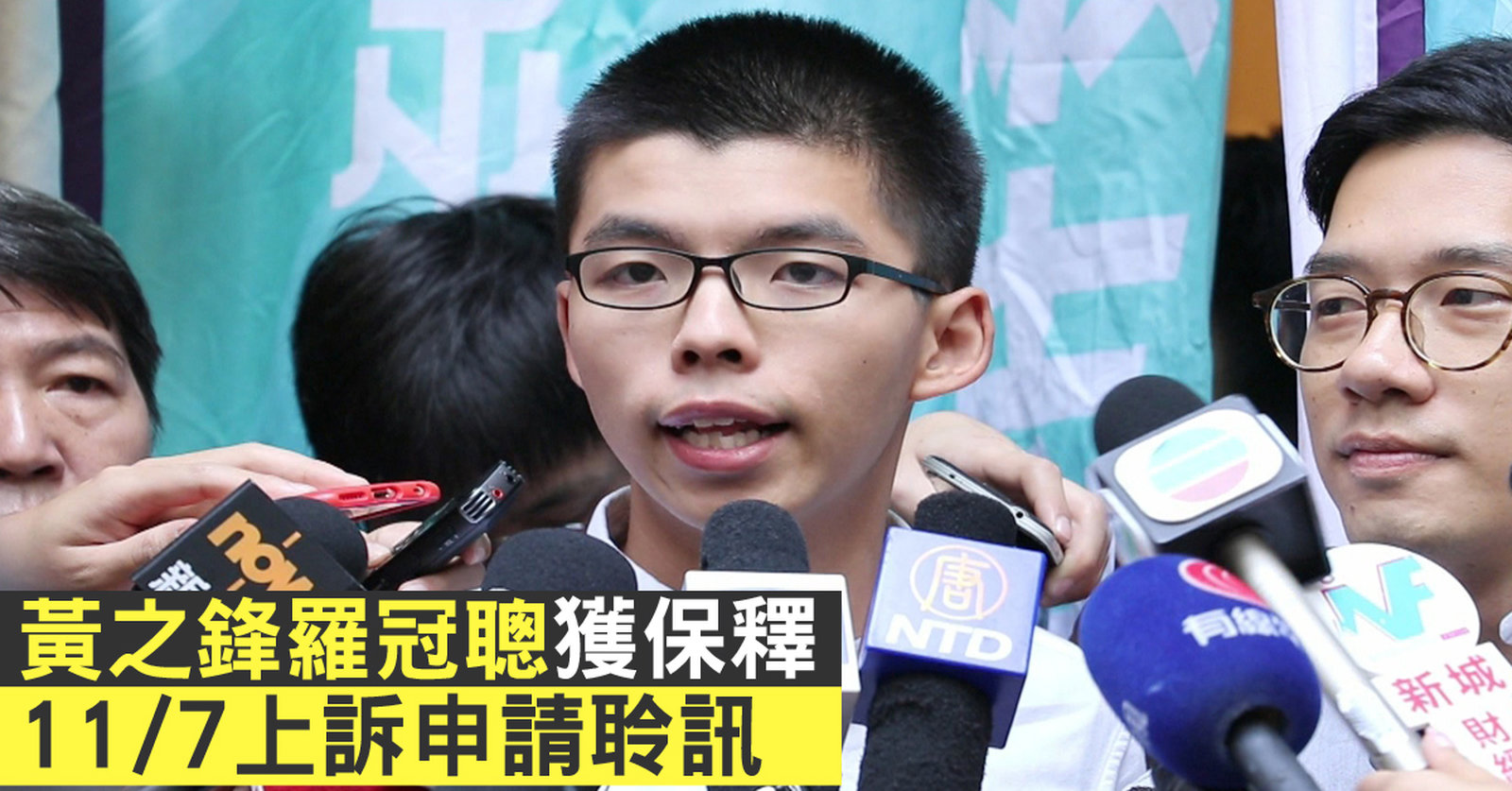 黃之鋒羅冠聰獲保釋 11月7日上訴申請聆訊
