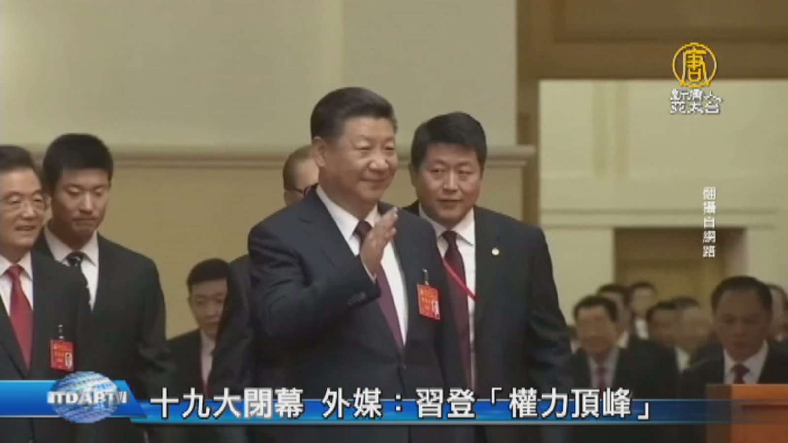 繼續來看到,十九大閉幕,各界聚焦在現任領導人 習近平 是否會安排接班人,而隨著「習思想」正式加入黨章的提案 ,在無人反對下 得到通過,外媒也聚焦,在中國,這樣罕見的事件,代表習近平正式登上「權力頂峰」。 //asset1.ntdtv.com.tw/public/uploads/assets/2017/10/24/2017-10-24-59ef411695772.mp4 習近平|十九大|習思想|王岐山2017-10-24 21:33:17